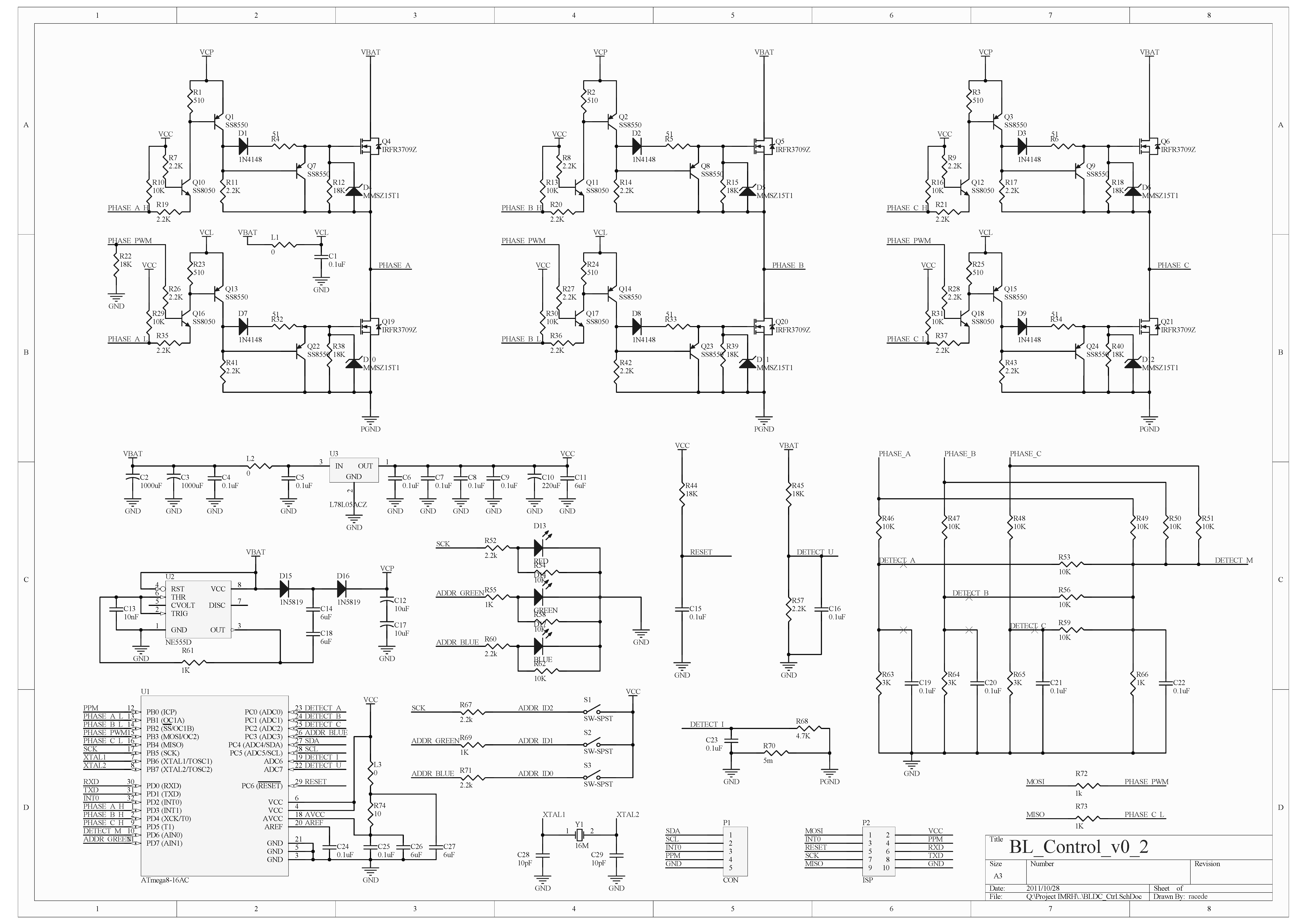 现在电调基本完成, 但并不是成品, 细节部分未完成, 成品还需要配合飞控的通信控制, 现在飞控还没有着手做所以通信控制的部分暂时用串口代替, 但是主要程序已经完成…除了启动比较笨拙以外, 效果还算可以.