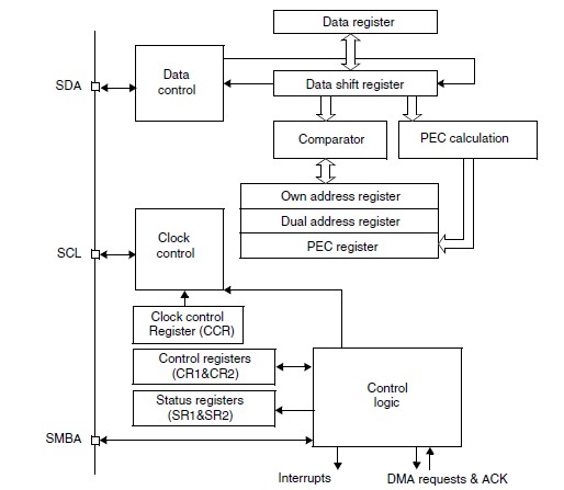 我们先来看一下STM32 I2C硬件的结构