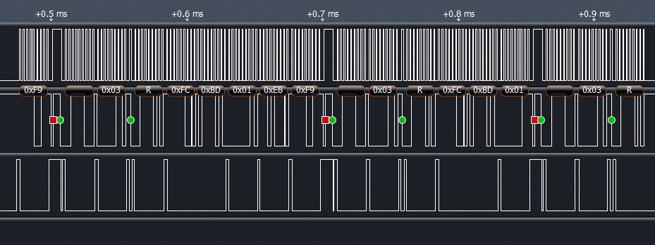 现在遇到的问题是:总线运行一段时间以后就会莫名的被拉低,事件中断中会遇到很多类库没有定义的事件代码