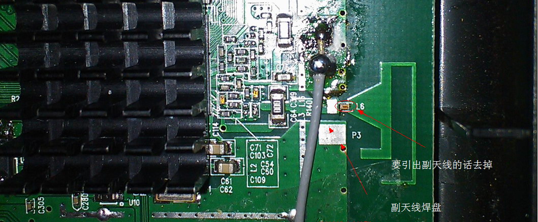 安装到位,调试发现AB间和以前一样传输速率很低,接收到的信号很弱,甚至连原装固件都不如根本不能使用。想起340G里还有一条PCB天线,就怀疑Ubnt会不会使用主天线发射,副天线接收。把A里连接副天线的电感去掉,焊上以前拆下来的原装全向天线,果然信号增加了6dBm,B也一样照做,信号虽然好了但是速率仍然很低CCQ<10%。